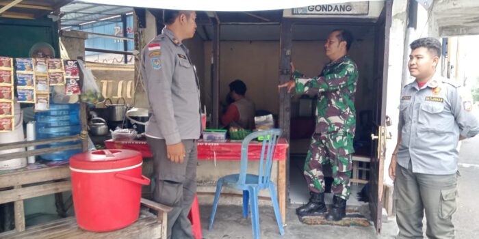 Patroli Babinsa Manahan Bersama Linmas Susuri Pemukiman Penduduk Dan UMKM
