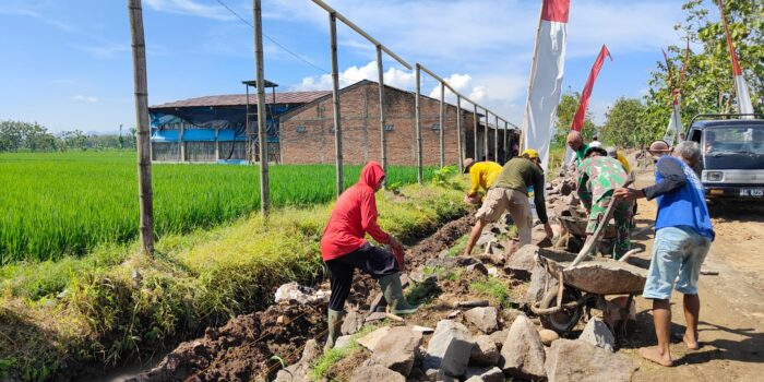 Kulon Progo, Bengawanpos.com – Satuan Tugas TNI Manunggal Membangun Desa (TMMD) Reguler ke-128 Kodim 0725/Sragen membangun talud sepanjang 150 meter di Desa