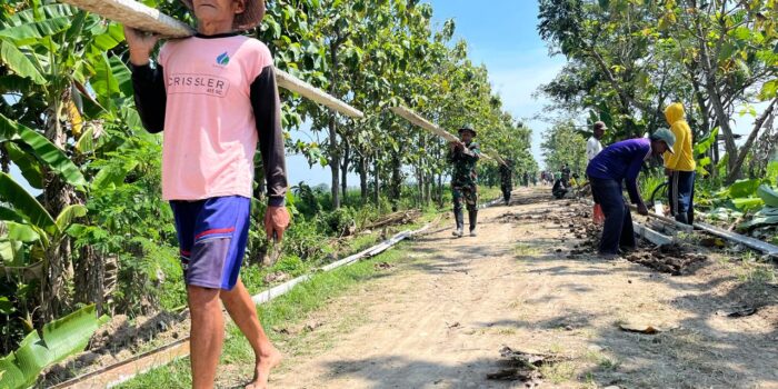 Sragen, Bengawanpos.com – Satuan Tugas TNI Manunggal Membangun Desa (TMMD) Reguler ke-128 Kodim 0725/Sragen bersama warga Desa Puro, Kecamatan Karangmalang, mulai memasang