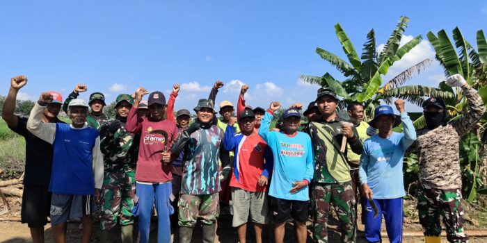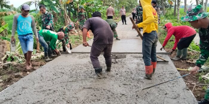 Sragen, Bengawanpos.com – Kebersamaan antara personel Satuan Tugas TNI Manunggal Membangun Desa (TMMD) Reguler ke-128 Kodim 0725/Sragen dan warga Desa Puro, Kecamatan