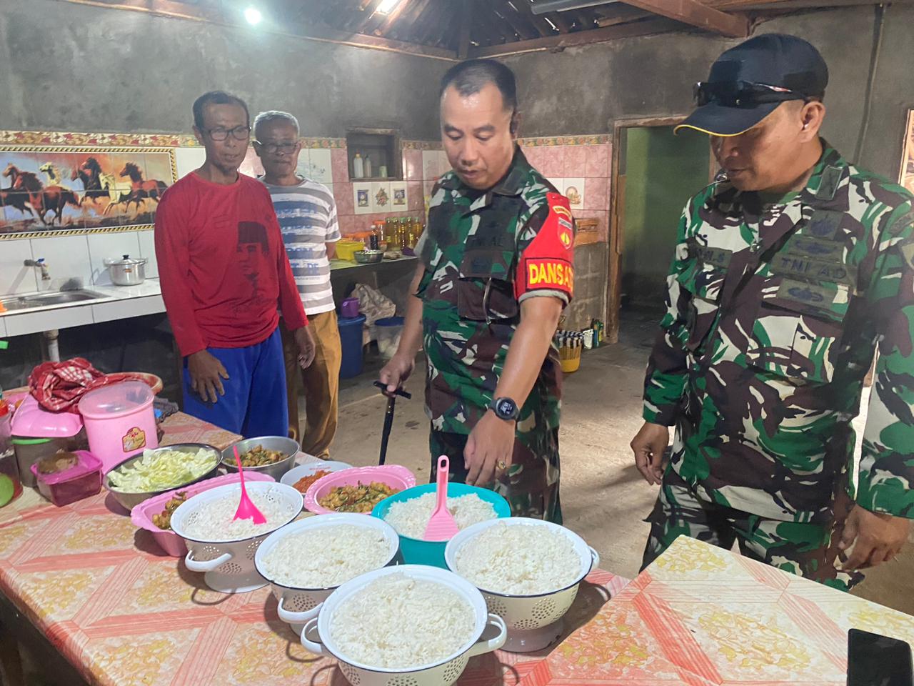 ” Gimana Bu rasanya memasakkan makanan untuk bapak-bapak Tentara, harus semangat ibu “, ucapnya.