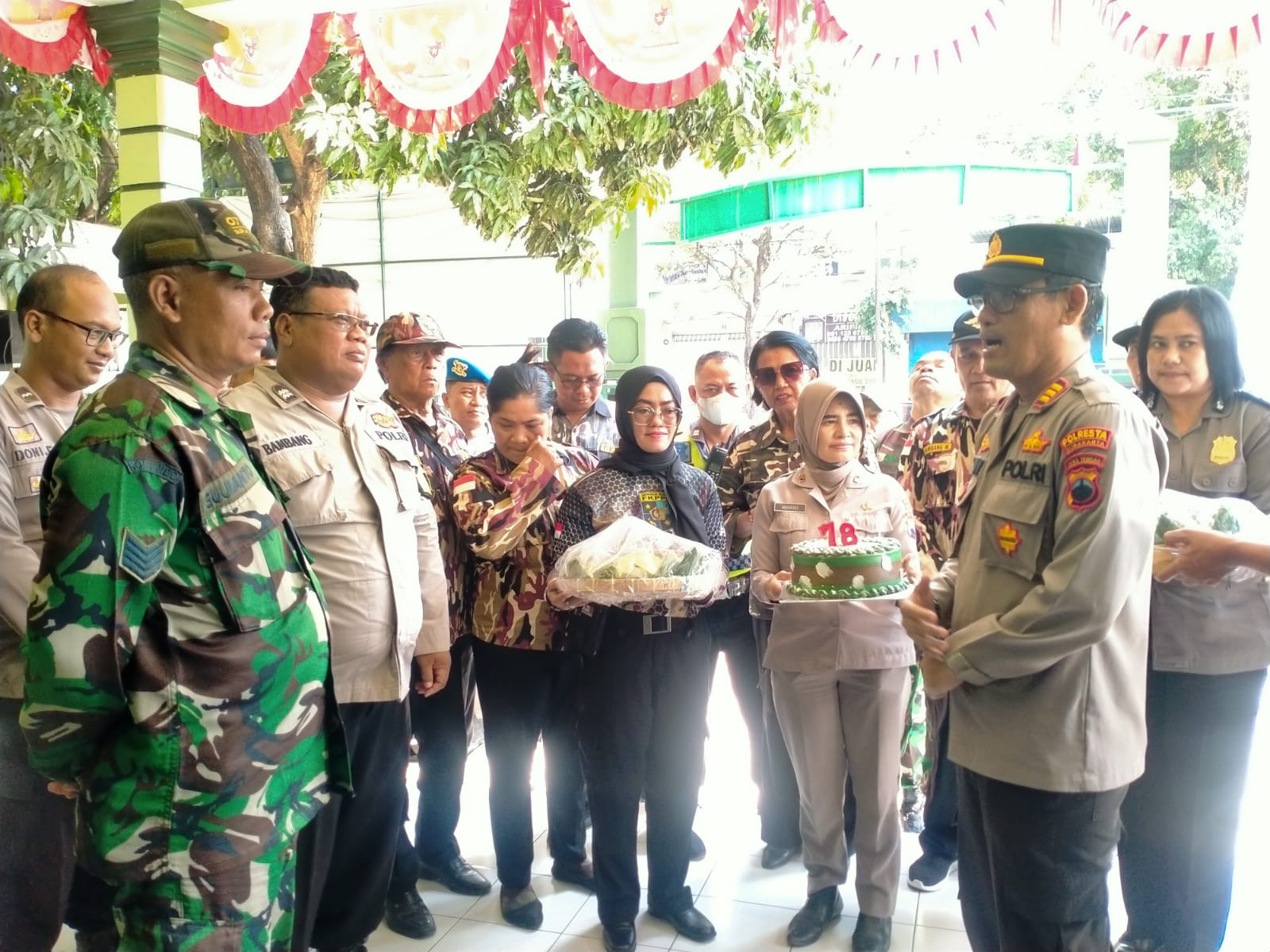 Selesai menyampaikan ucapan selamat HUT ke-78 TNI di lanjutkan pemotongan Tumpeng dan Kue ulang tahun oleh Bati komsos 02/Banjarsari dan ramah tamah.