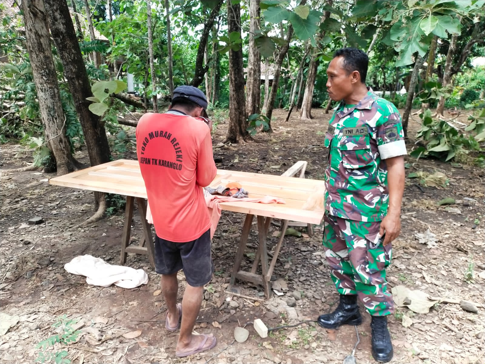 Babinsa Koramil 15/Gemolong Kodim 0725/Sragen, Sertu Sriyatno, bersama petani Desa Purworejo