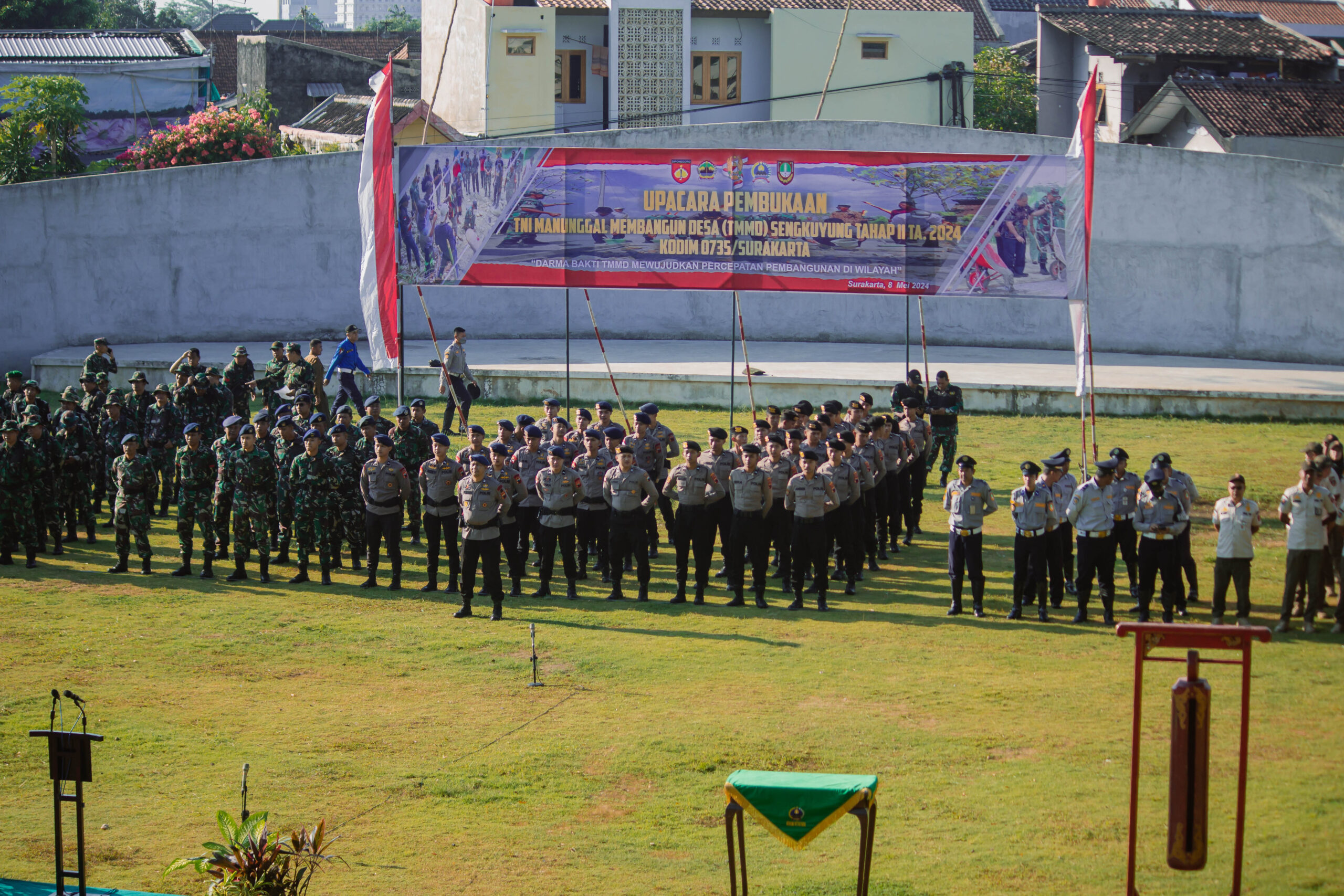 Surakarta, BengawanPos.com – Hari ini (8/5) di Taman Lingkar Lokananta Jl. Ahmad Yani No.379 Kelurahan Kerten Kecamatan Laweyan Kodim 0735/Surakarta Bekerja sama dengan pemerintah kota Surakarta, dilaksanakan Upacara Pembukaan TMMD Sengkuyung II Kota Surakarta Tahun 2024, bertindak selaku Inspektur Upacara Drs. Teguh Prakoso MM (Wakil Walikota Surakarta) dan Komandan Upacara Kapten Inf Gasar (Danramil 02/Banjarsari), diikuti sekitar 350 orang peserta .