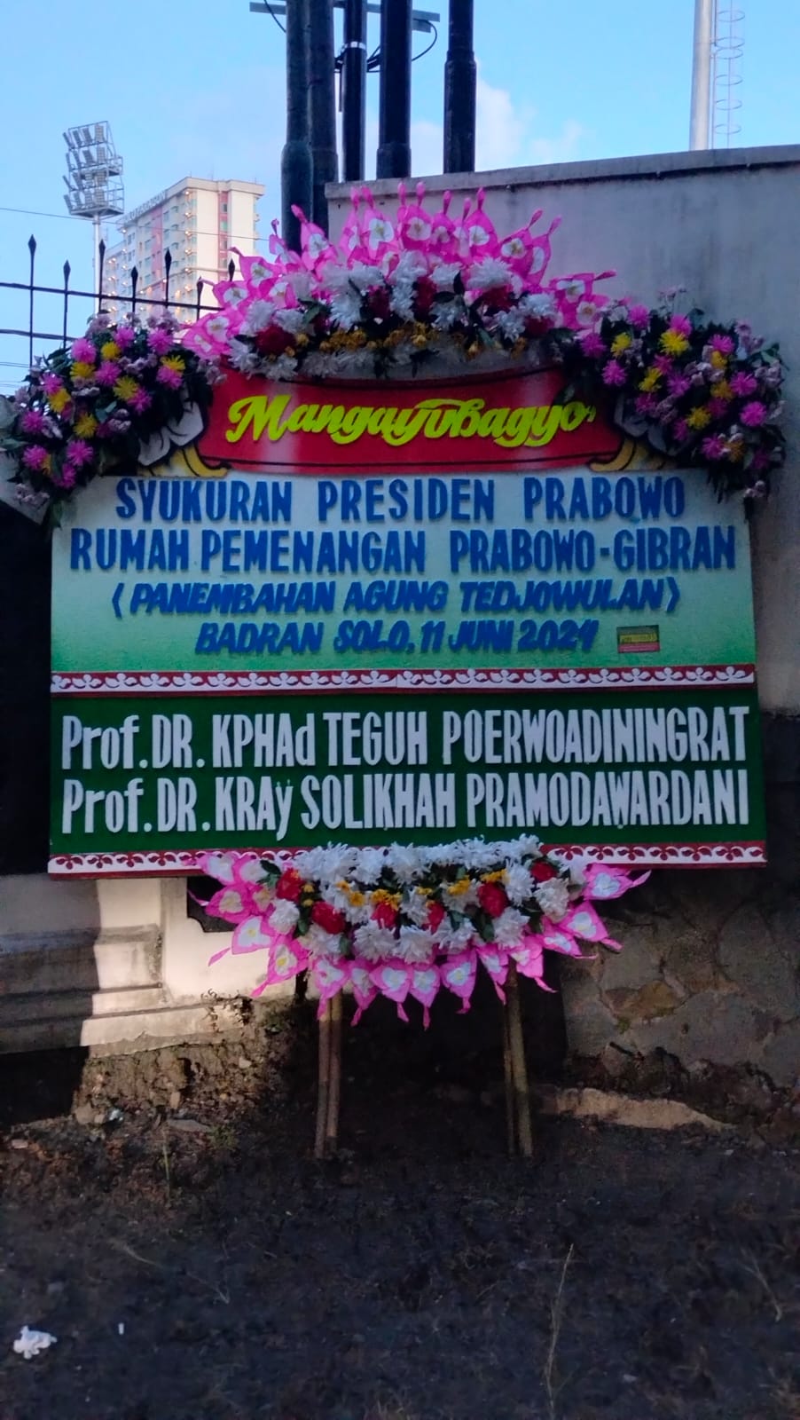 Surakarta –Tasyakuran kemenangan pasangan Prabowo Subianto dan Gibran Rakabuming Raka berlangsung meriah di Badran, Solo, baru-baru ini. Acara yang digelar oleh Sinuwun Gusti Tedjowulan ini juga mendapat dukungan penuh dari Perkumpulan Sasana Purnawa (PSP) di bawah pimpinan Gusti Putri dan koordinator pusat KPHad Teguh.