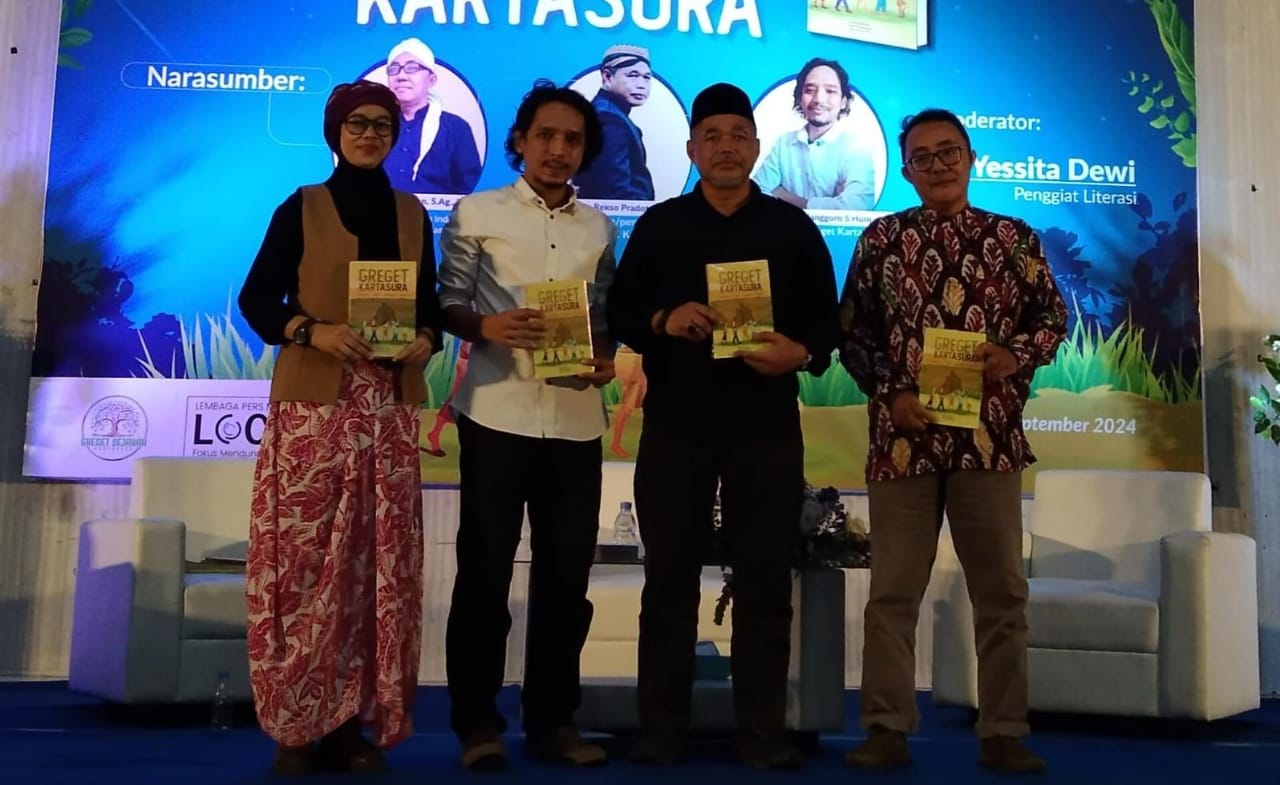 Kartasura – Diskusi dan bedah buku *Greget Kartasura* sukses digelar di Gedung Graha UIN Raden Mas Said Surakarta pada 14 September 2024. Acara ini menghadirkan narasumber Anang Haris Himawan, S.Ag., M.Pd. sebagai Peneliti Rumah Sejarah Indonesia Dosen UIN , serta penggagas buku, KRT Djuyamto Rekso Pradoto, S.H., M.H., dan penulis buku Greget Kartasuro , Hendaru Tri Hanggoro, S.Hum, dengan Moderator Yessita Dewi penggiat literasi. Kegiatan ini merupakan lanjutan dari rencana yang sempat tertunda pada peluncuran pertama buku *Greget Kartasura