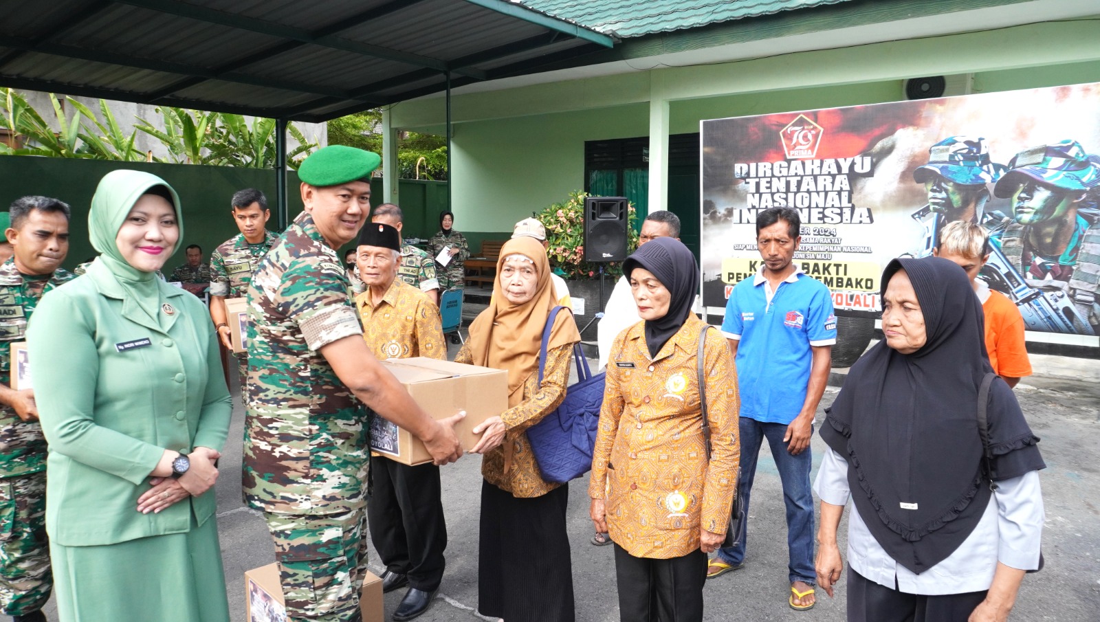 Kegiatan Bakti sosial ini meliputi, Pembagian sembako, Donor Darah, Periksa kesehatan gratis dan Khitanan Masal. Kegiatan ini melibatkan seluruh personel Kodim dan dihadiri oleh tokoh masyarakat. Untuk kegiatan pembagian sembako sebanyak ratusan paket sembako yang berisi bahan makanan pokok dibagikan kepada warga yang membutuhkan.