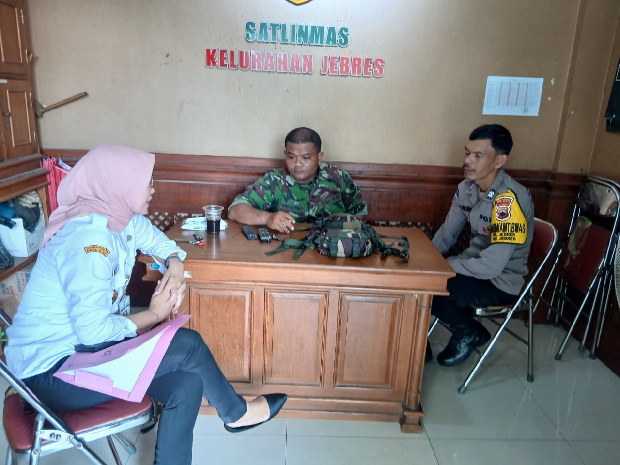 SURAKARTA | BENGAWANPOS.COM – Babinsa Kelurahan Jebres Koramil 04/Jebres Kodim 0735/Surakarta Serda Winarno melaksanakan Komunikasi Sosial (Komsos) bersama Tiga Pilar, Babinsa, Bhabinkamtibmas Kelurahan Jebres Aiptu Yeni Prasetyo, S.H, dan Lurah Jebres Ibu Renyta Ina Wijaya, SE., M.Si., bertempat di Kantor Linmas Kelurahan Jebres, Kecamatan Jebres, Selasa (04/11/2025).