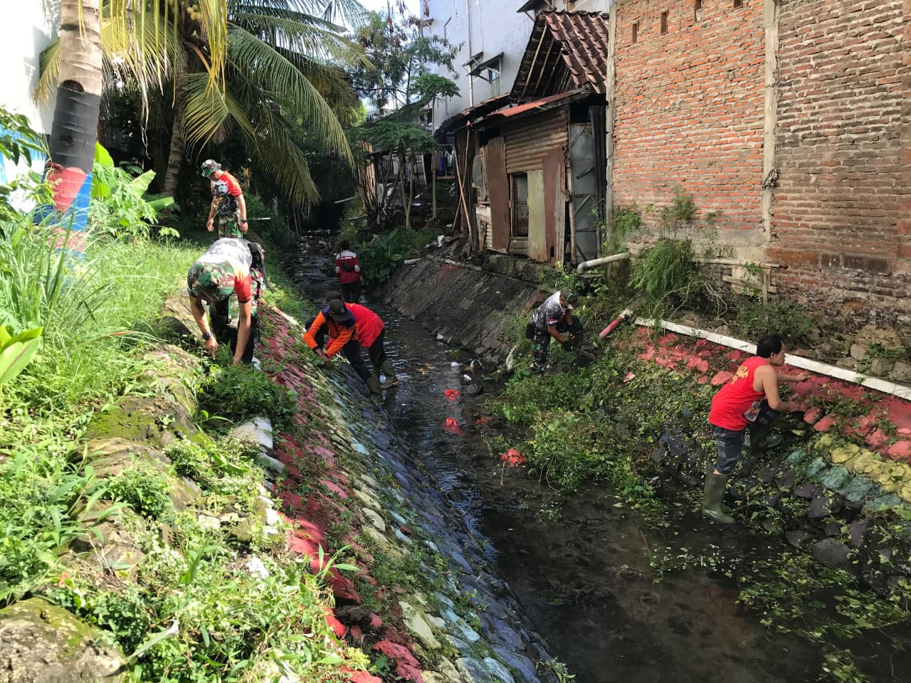 Cegah Bahaya Banjir, Koramil 04/Jebres Laksanakan Kerja Bakti Bersih – Bersih Sungai