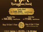 Dari sisi penawaran, hotel memberikan promo Early Bird Rp99.000 nett per pax dari harga normal Rp119.000 nett per pax. Promo berlaku untuk reservasi hingga 15 Februari 2026.