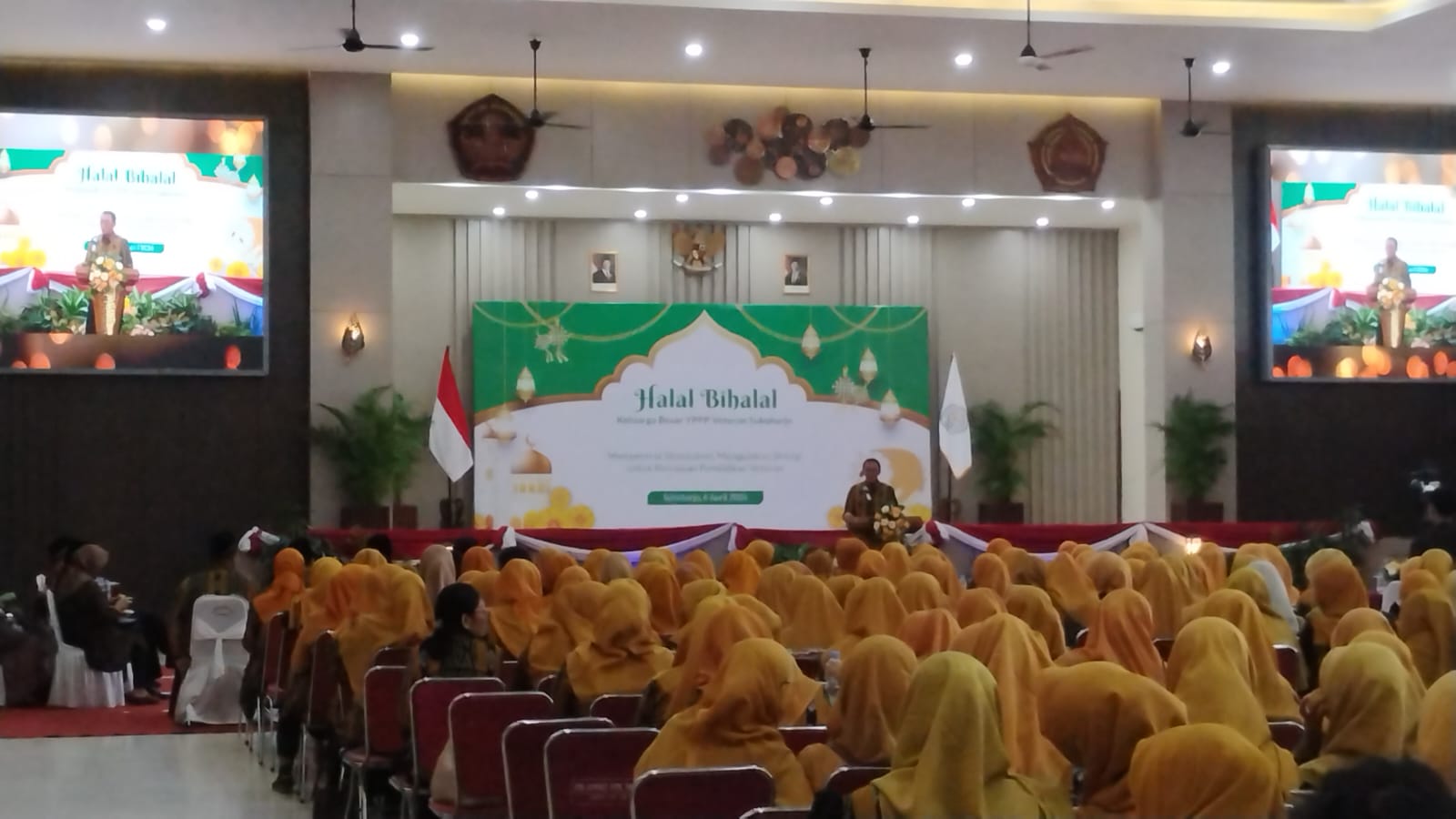 SUKOHARJO, Bengawanpos.com – Ratusan dosen, guru, karyawan, serta jajaran pimpinan lembaga pendidikan di bawah naungan Yayasan Pembina Pendidikan Perguruan (YPPP) Veteran Sukoharjo menghadiri kegiatan Halalbihalal yang digelar di Wisma Widya Karya Dharma Auditorium, Universitas Veteran Bangun Nusantara (Univet Bantara), Senin (6/4/2026).