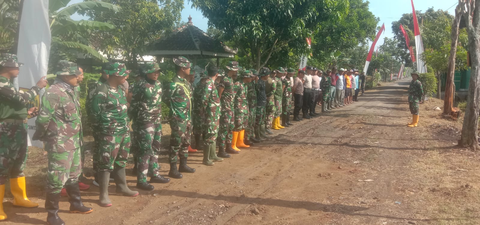 Kegiatan tersebut dipimpin oleh Sertu Nurdin di lokasi TMMD, Dukuh Terik Mulyo, Kelurahan Puro, Kecamatan Karangmalang, Kabupaten Sragen, Kamis (23/4/2026).